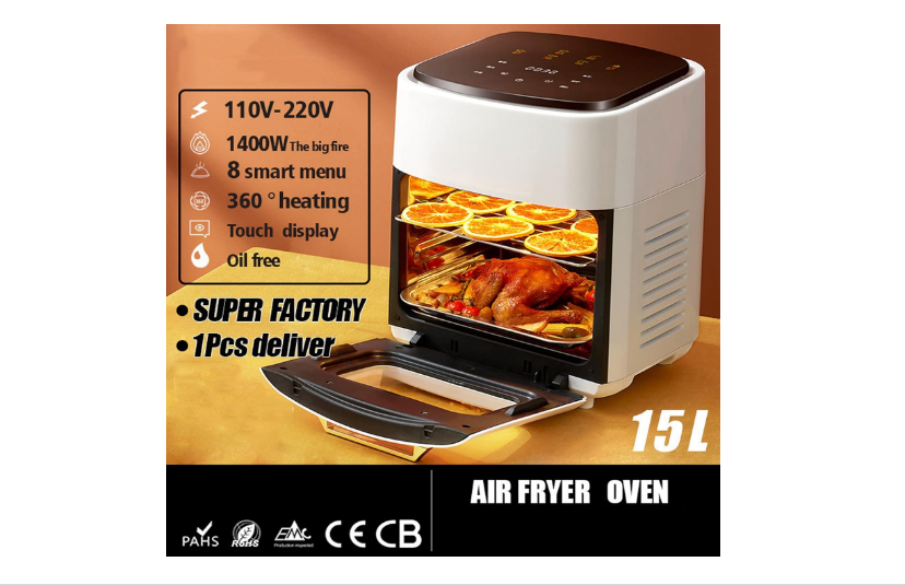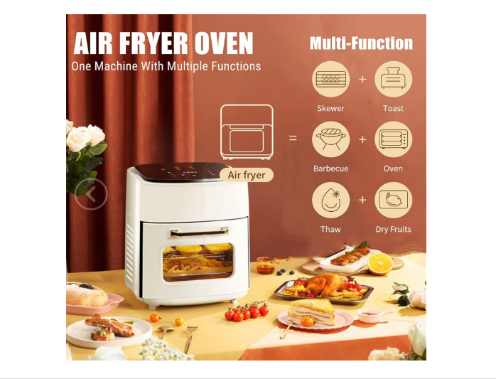 All-In-1 Machine: This air fryer toaster oven is not only an air fryer, but also a rotisserie, dehydrator, pizza grill and oven toaster. with wide temperature range from 180? to 400?, this large air fryer allows you to air fry, bake, grill, roast, toast, dehydrate and rotisserie.