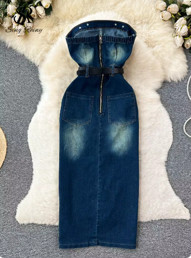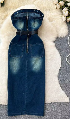 Upgrade your wardrobe with our Boobtube Jean Dress, featuring a classic denim design. Made with high-quality materials, this dress offers durability and comfort for everyday wear. Perfect for any occasion, this versatile dress will elevate your style and make you stand out from the crowd.