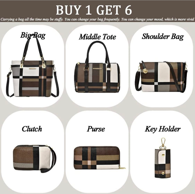 1 x Set of 6 pcs (Big bag, Middle Tote, Shoulder Bag, Clutch, Purse, Key Holder)