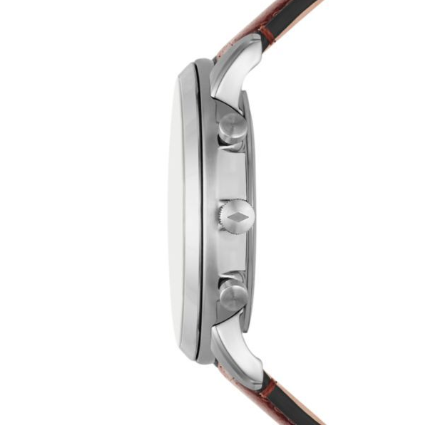 This 44mm Neutra features a rose gold sunray dial, chronograph movement and medium brown eco leather strap.