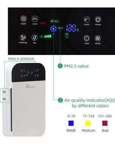- PM 2.5 Display - PM2.5 indicator detects the concentration of dust particles in the air.