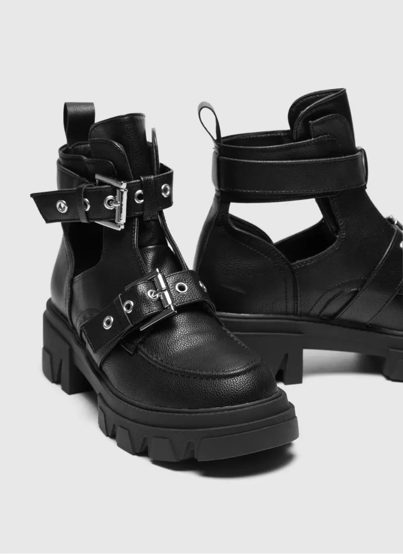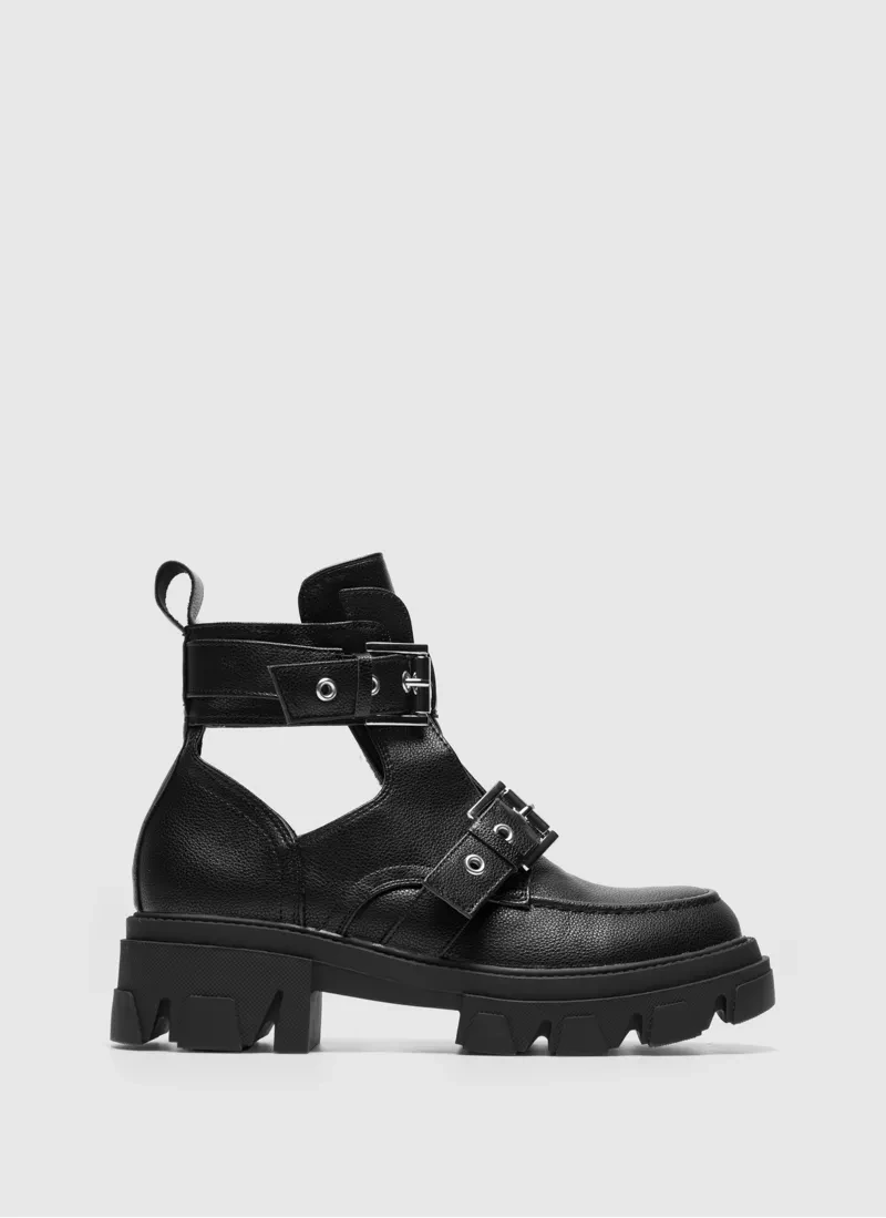 Step into timeless elegance with the Midnight Stroll Ankle Boots. Crafted from premium black leather, these flat ankle boots offer both style and comfort.
