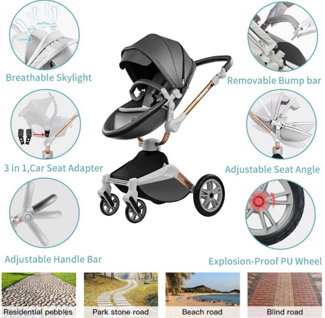 -The handlebar on the stroller is also adjustable to suit the required height for the person pushing the stroller.