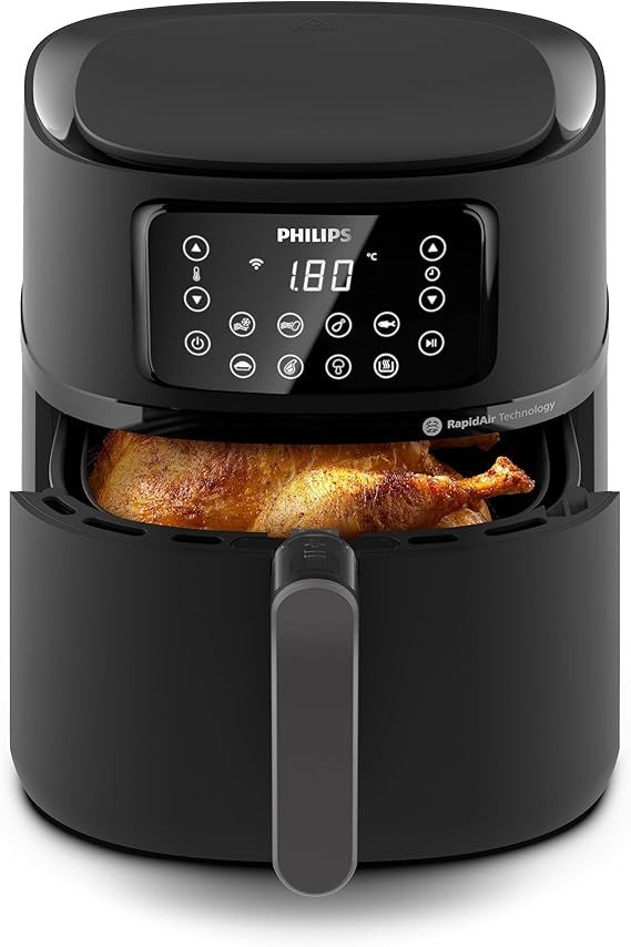 Philips 5000 Series Digital 2X-Large 16 in 1 Cooking Functions Connected Airfryer has 13 different cooking functions: fry, bake, grill, roast and reheat. Also select from fries, chicken, fish and much more for great results, every time. The Philips 5000 Series Connected Airfryer has a starfish design and swirls hot air to the create delicious foods that are crispy on the outside and tender on the inside with little to no added oil - healthy every time. Rapid Air Technology: This technology ensures even cooking and crispy textures with little to no added oil, promoting healthier meals. Simplify cooking with pre-programmed settings for popular dishes like fries, chicken, fish and vegetables.