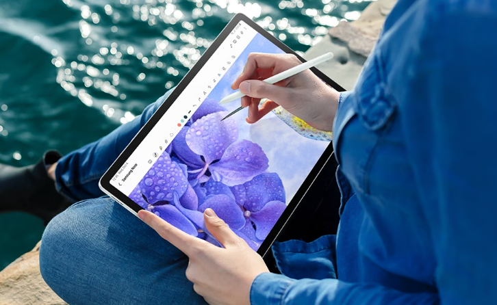 Vision Booster lets you see your Tab's spacious screen clearly in brightly lit areas an intelligent outdoor algorithm that detects the sun's glow and shifts to match. Go between the studio and patio with ease contrast and color enhancements to keep things vibrant. View content, create and play as long as you like, knowing your eyes are well protected.