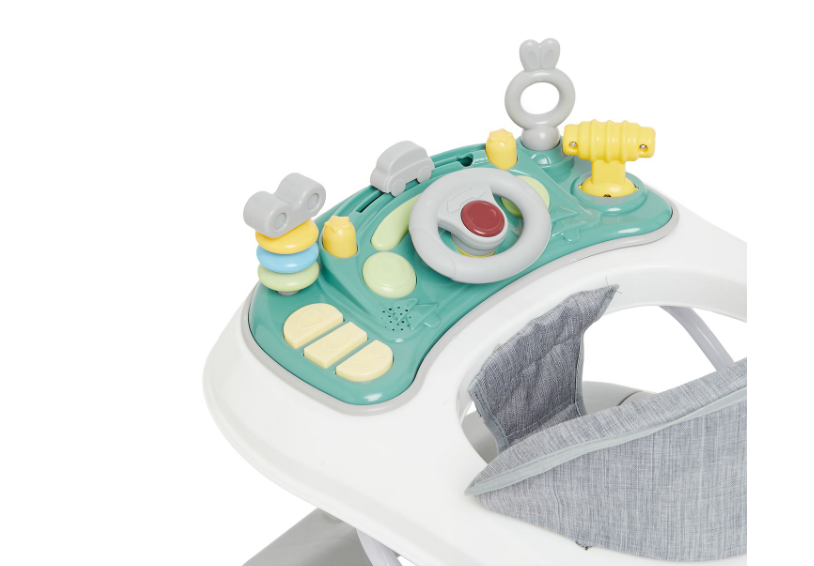 This baby walker is the perfect accessory as your child prepares to take their first steps, designed to make your little one entertained while learning how to walk. Designed to help stimulate early development, this walker includes a toy tray with melodies and lights and is easy to set up and store. Our removable toy tray will keep your baby entertained while stimulating and enhancing their cognition and body coordination. It will stimulate the baby's visual and auditory senses. Along with multi-directional front wheels that offer freedom of movement, the extra wide base provides superior support and stability so your baby can be confident as they navigate new grounds. With the high-back padding on the seat, your baby will feel extra comfy in our walker.