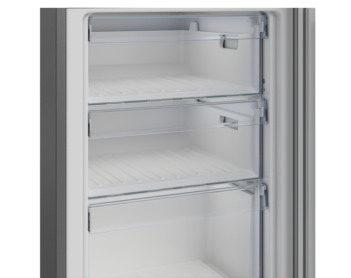 The thoughtful details continue with an egg tray, ensuring your eggs are stored safely and conveniently. In the freezer section, two drawers and freezer flaps allow for organized storage of frozen goods, making it easy to access and retrieve items when needed.