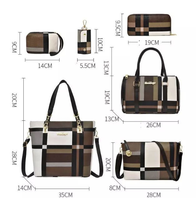 1 x Set of 6 pcs (Big bag, Middle Tote, Shoulder Bag, Clutch, Purse, Key Holder)