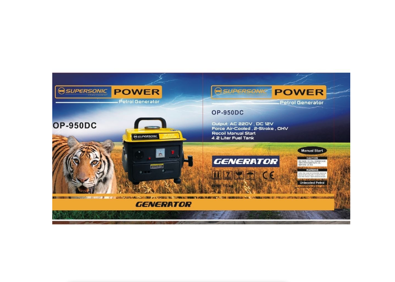 Supersonic Generator OP-950DCA produces 650VA. You can run a TV(LED), decoder, lights, and other appliances. This will take as much as 4.2 litres of petrol. It has force air-cooled, 2-stroke and single cylinder. This has got enough power for basic home living.