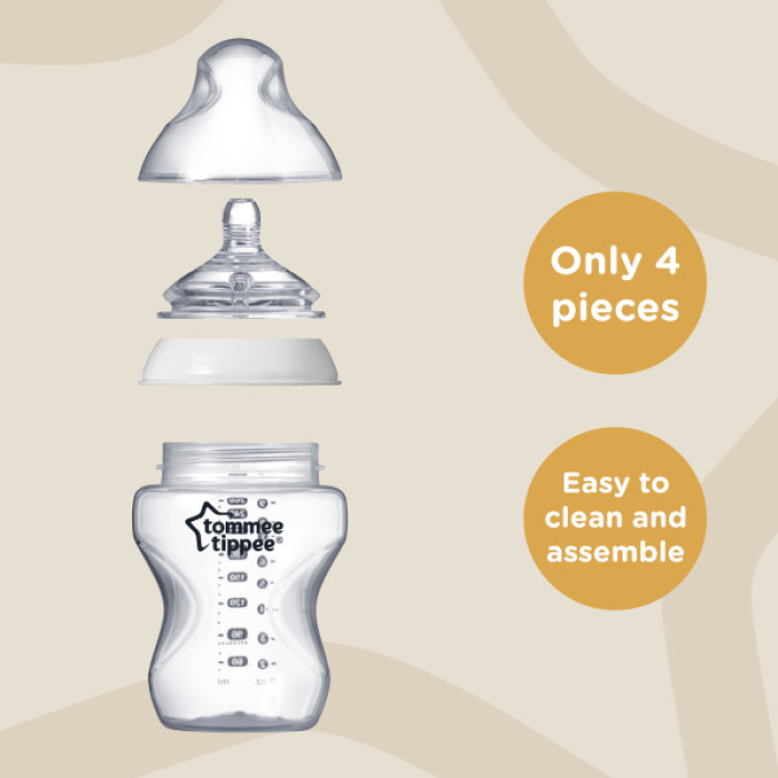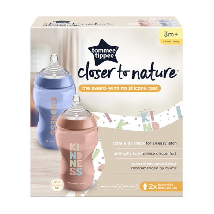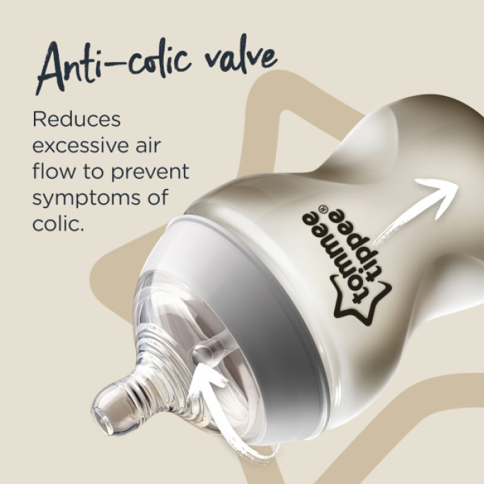 With our built-in anti-colic valve, it could just be the best thing for a baby, since you! Inspired by mum, designed by experts. Loved by mums and babies, our easy latch-on teat feels closer to skin and mimics the natural flex and movement for a comfortable feed. . All Closer to Nature bottle teats feature an anti-colic valve to prevent the symptoms of colic by ensuring your little one ingests more milk and less air. Together with the bottle’s sensitive valve, the wide bottle neck encourages your baby’s intuitive feeding action. Designed to be held in the most natural position during feeding, the compact shape of the bottle also allows the baby to be closer to you. Tommee Tippee Closer to Nature baby bottles is available in a wide range of sizes, colours and decorations. Teats are available in a range of flow rates too, so the milk can flow faster as your baby gets hungrier! The wide neck bottle makes cleaning easy and the bottles are suitable for use in the dishwasher, microwave and steam sterilisers. 100% BPA-free for complete peace of mind.